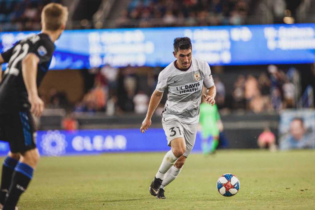 May 25, 2022 – Fourth USOC Matchup: Luis Felipe dribbles the ball away from Republic FC’s defensive half.
