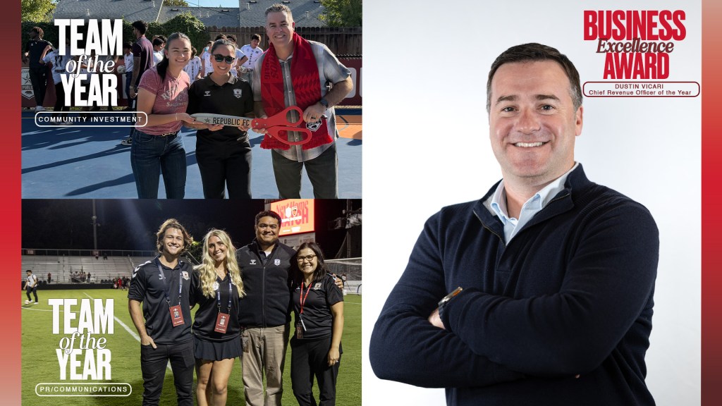 Chief Revenue Officer Dustin Vicari led the way, winning the Business Excellence Award for the second time in three years. Since joining the club in 2020, Vicari – has consistently led Republic FC’s partnerships and ticket sales teams to league-leading attendance and revenue, with significant growth year-over-year.