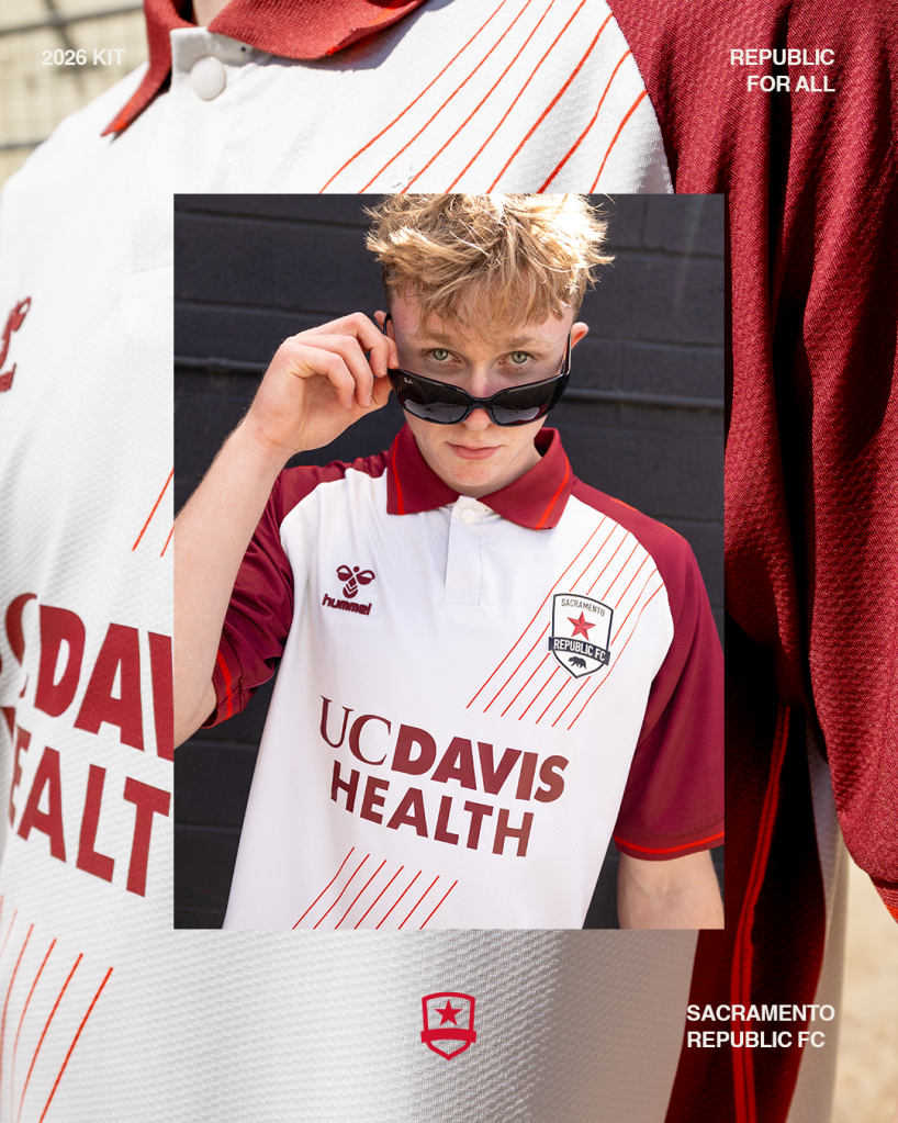 Set in Stone White, with Old Glory Red shoulders and Resilient Red trim, the Republic For All kit features design elements of heritage football – a sharp collar, a single button, a sash stretching from the crest down across the chest. The club’s founding partner UC Davis Health continues their long-standing commitment as the kit sponsor. A textured Republic For All tag on the waistline reflects the different cultures, histories, and communities that make up the region. The 988 patch for the National Suicide and Crisis Lifeline continues the club’s commitment to mental health awareness that players carry into every stadium across the country.